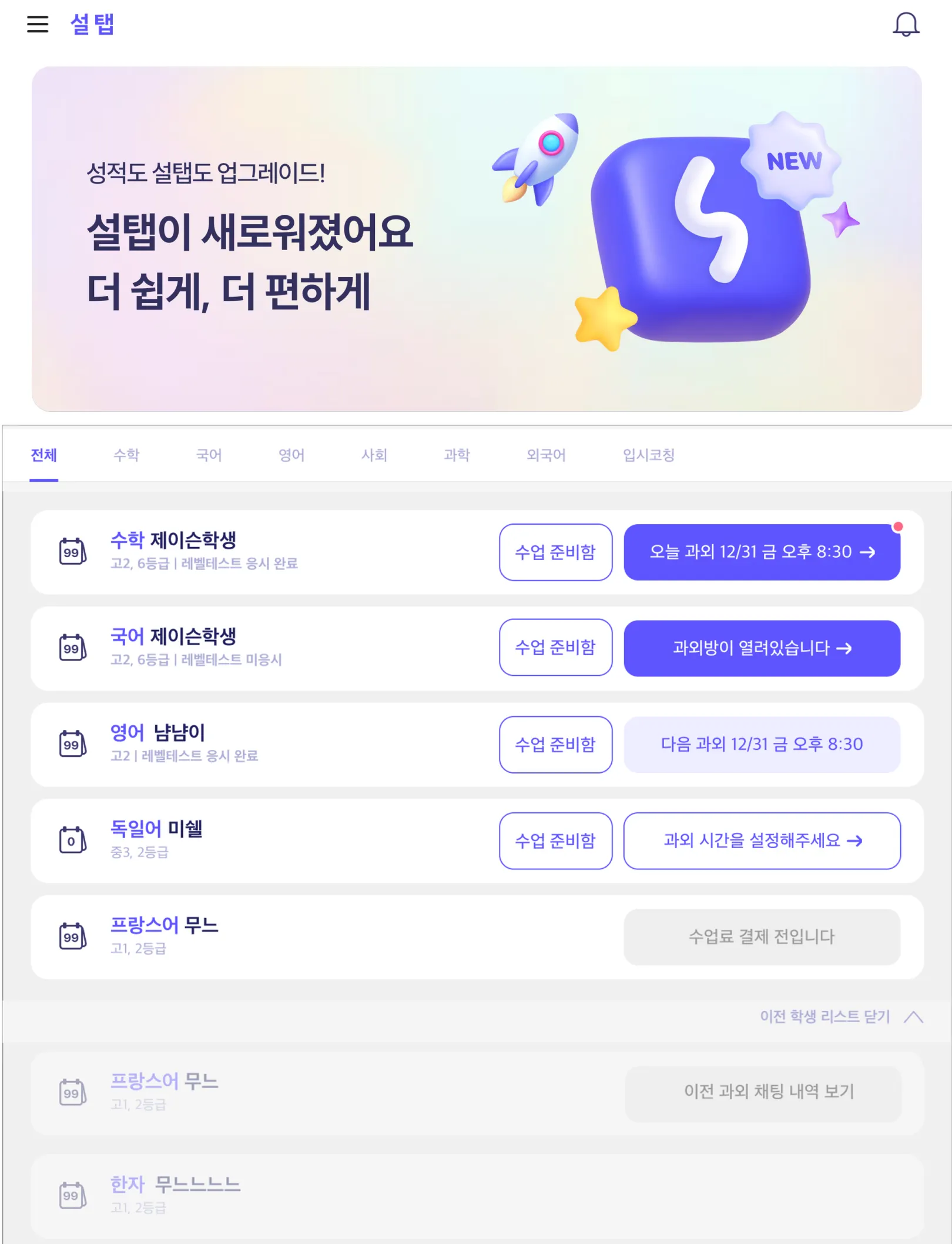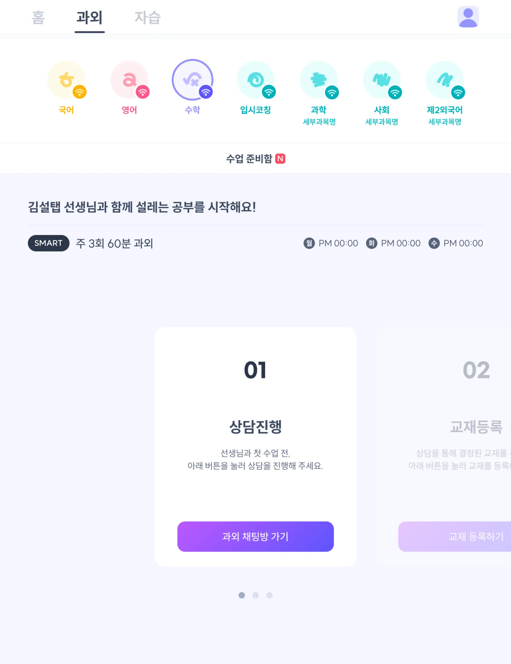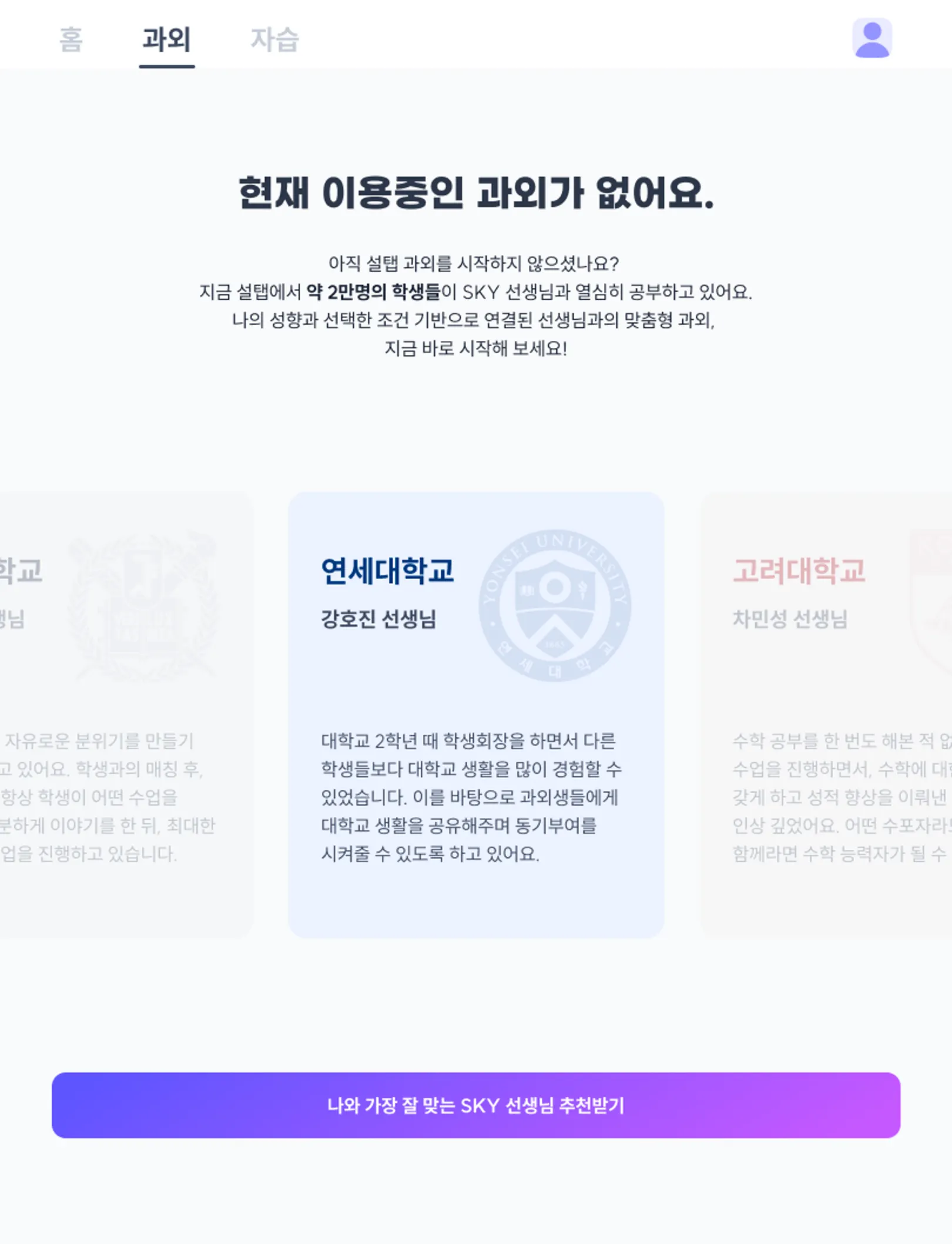 과외를 결제하지 않은 학생은 아래처럼 보여요.