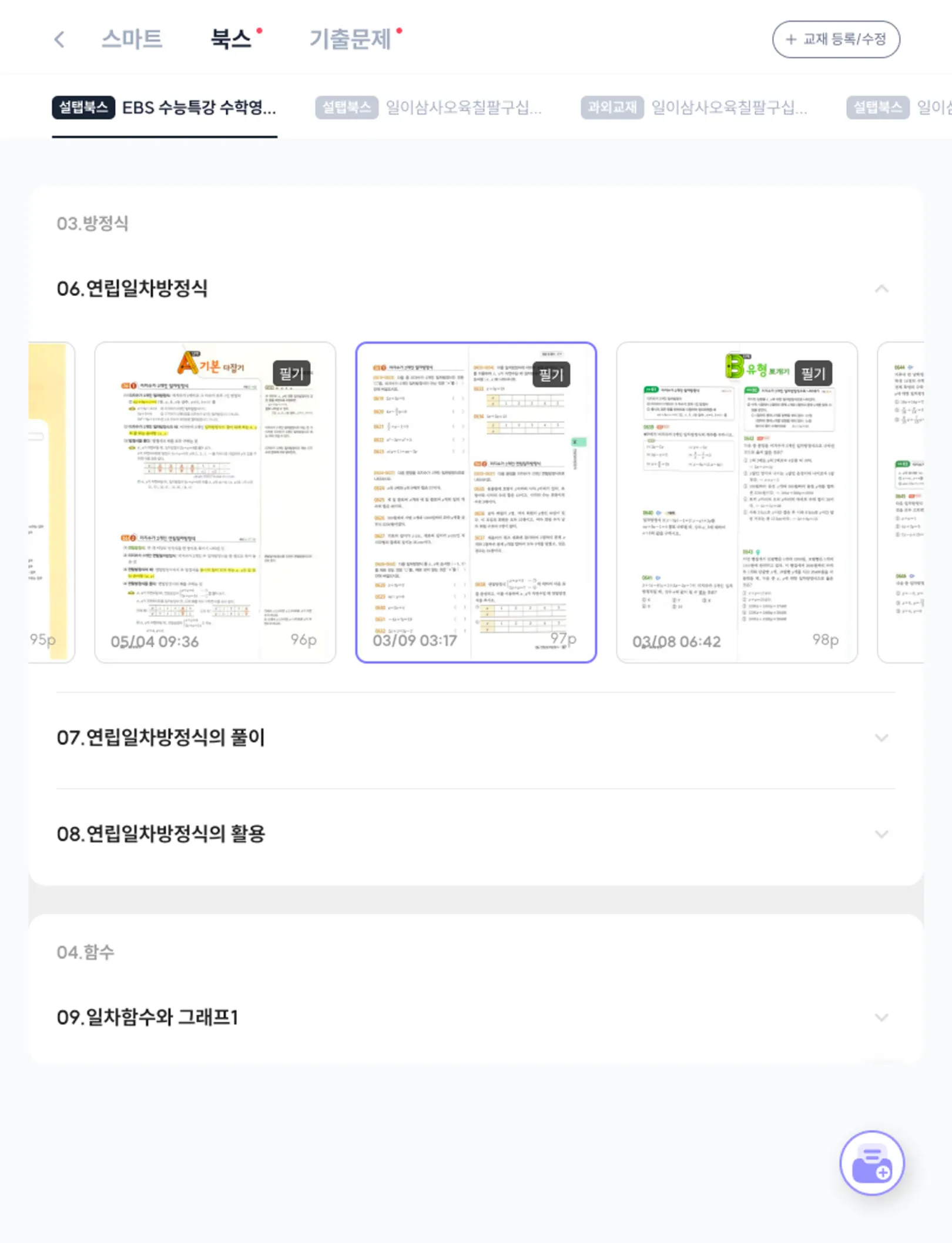 북스 : 구매한 문제집으로 공부할 수 있는 북스 페이지 리스트로 이동해요.