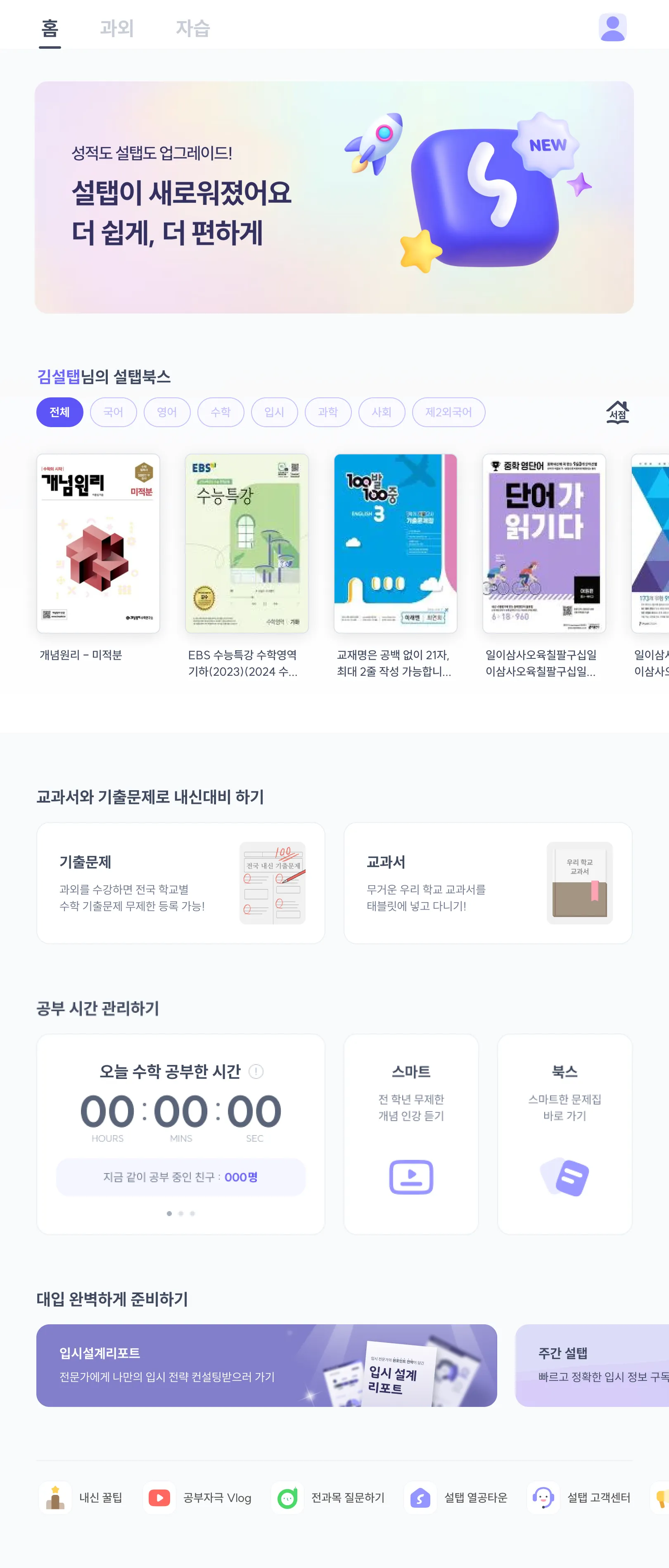 설탭북스 : 구매한 설탭북스 교재가 과목별로 정렬되어 나타나요.