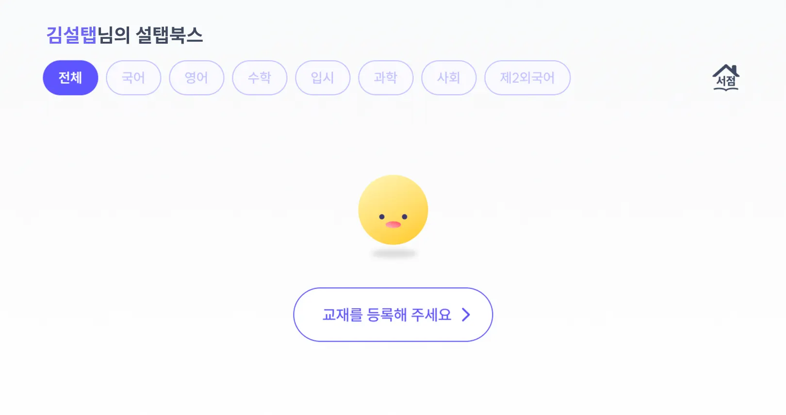 과외를 수강하고 있지만 교재를 등록하지 않았다면 아래처럼 보여요.