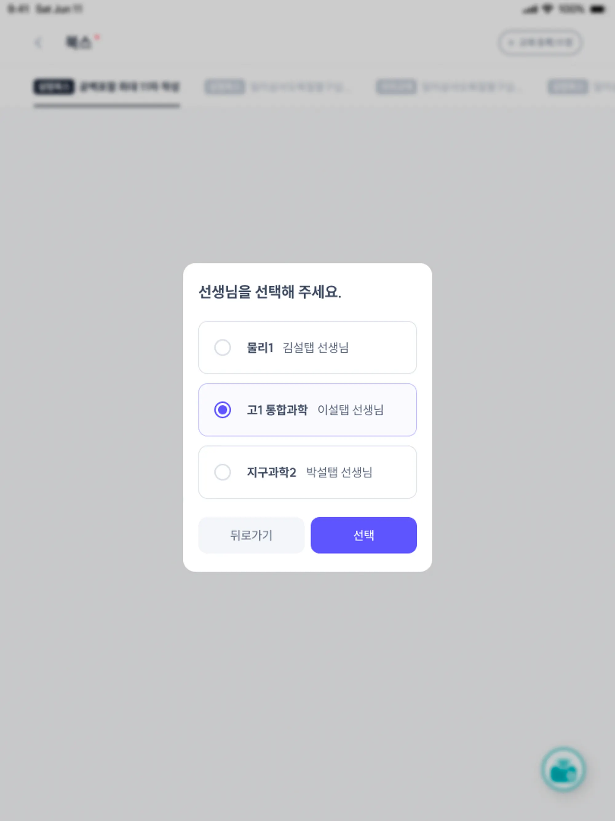 수업준비함 버튼 탭 시 선생님을 선택해서 자료를 추가해요.