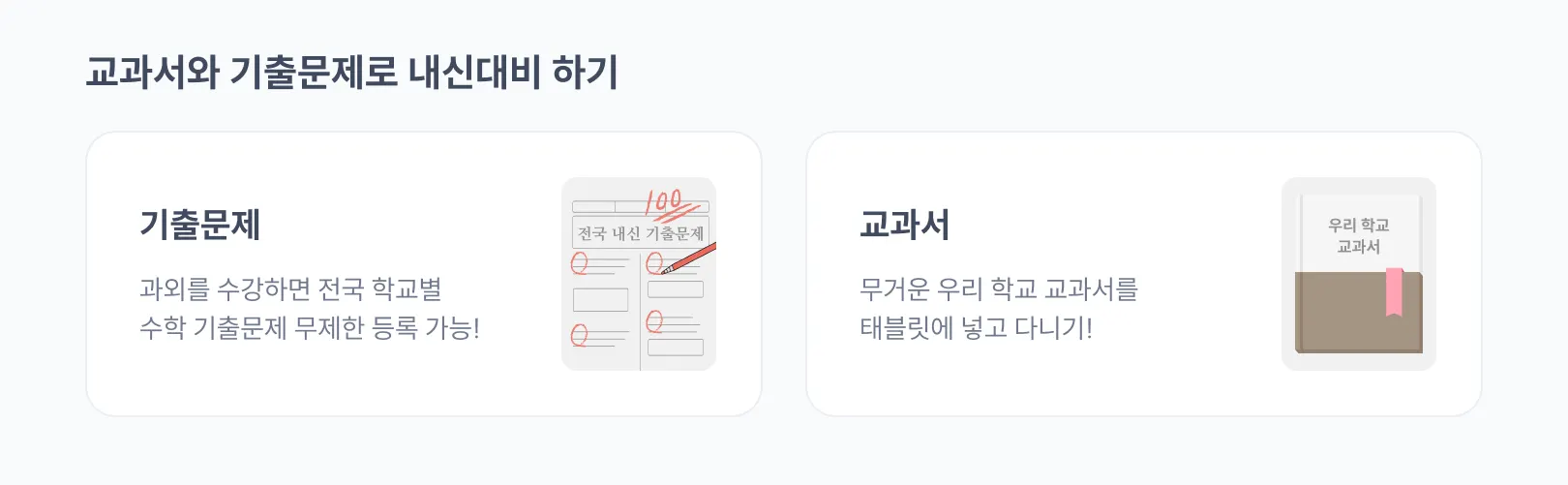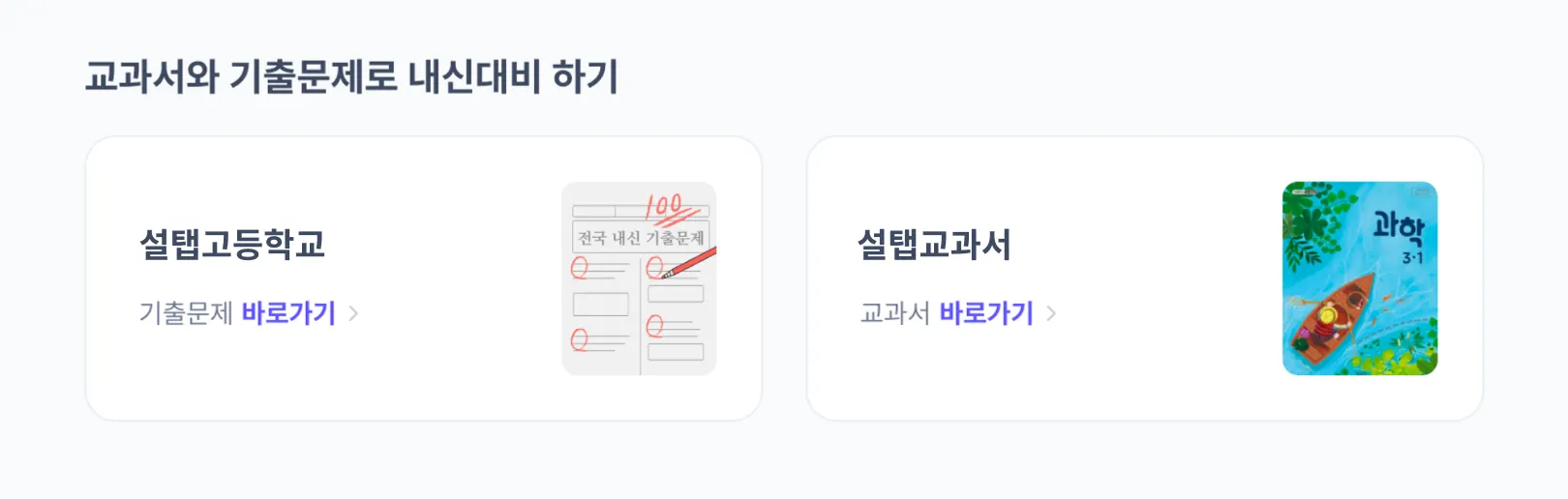 아직 기출문제와 교과서를 등록하지 않았다면 아래처럼 보여요.